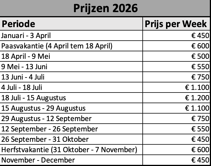 Voor 2026 hanteren we dezelfde prijzen als in 2025.